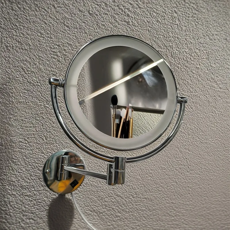 Material: chrome copper+chrome stainless steel with 2mm third-generation eco-friendly glass; CE certified driver, base conventional switch, full mirror power 3 watts; Double-sided mirror (3x magnifying glass + flat mirror); Support concealed installation.